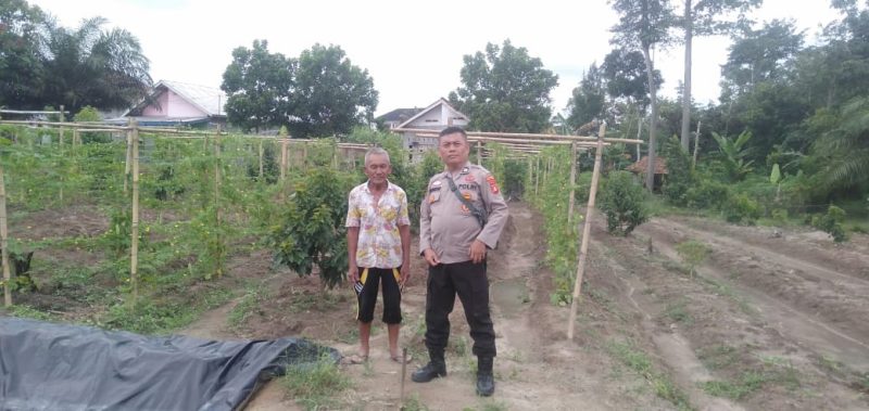 Dengan mengenakan seragam dinas dan topi lapangan, Aiptu CIK Mansyur tak segan turun langsung ke lahan, membantu warga merawat tanaman cabai yang menjadi salah satu komoditas andalan desa. Ia membersihkan gulma, menyiram tanaman, serta berdialog langsung dengan petani terkait kebutuhan dan kendala yang dihadapi di lapangan.