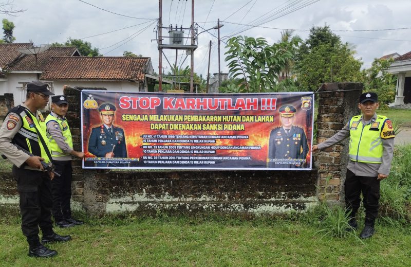 Cegah Asap Sejak Dini, Polsek Belitang I Pasang Spanduk Karhutla di Desa Sidogede