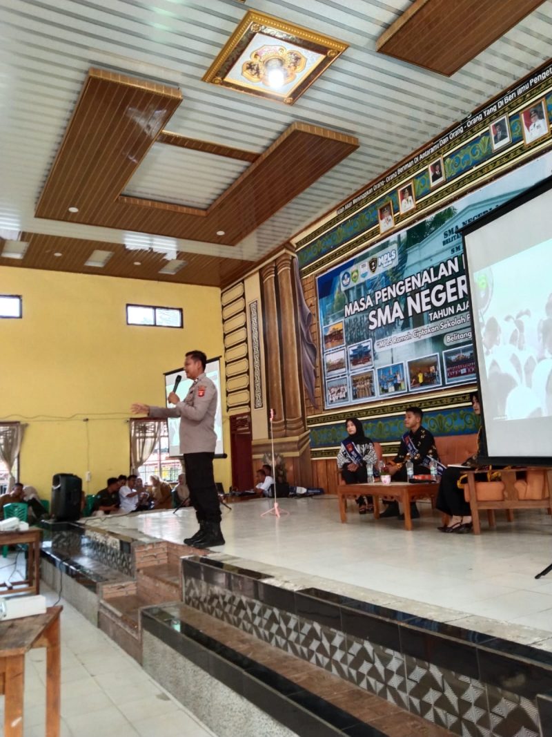 Sebanyak 350 siswa-siswi baru SMAN 1 Belitang antusias mengikuti sesi pemaparan materi tentang Pencegahan Bahaya Narkoba dan Tertib Berlalu Lintas. Kegiatan ini berlangsung mulai pukul 09.00 WIB dan dipimpin langsung oleh KSPK 1 Polsek Belitang I, Aiptu Ahmadi, S.H., yang mewakili Kapolsek Belitang I. Turut hadir mendampingi adalah Kepala Sekolah SMAN 1 Belitang beserta jajaran guru.