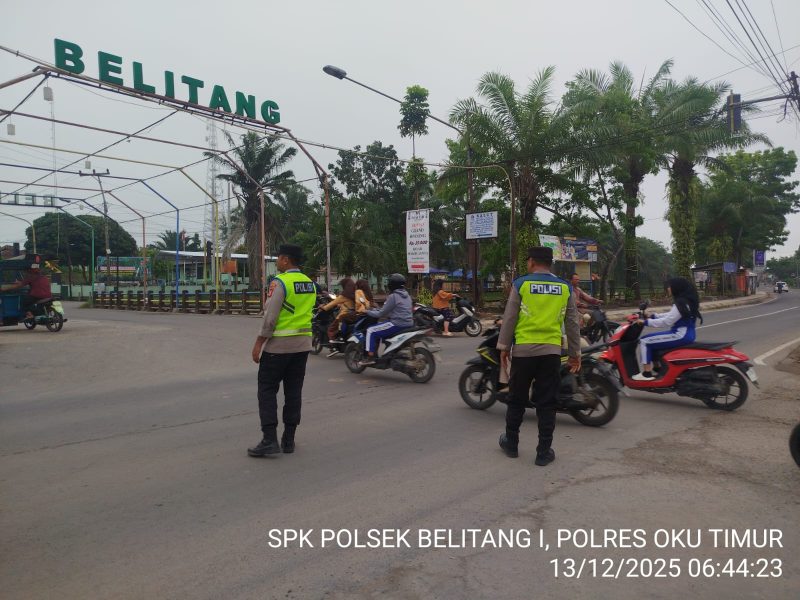 Belitang – Meskipun memasuki akhir pekan, semangat pelayanan personil Polsek Belitang I tetap maksimal. Pada hari Sabtu, 13 Desember 2025, mulai pukul 06.30 WIB, personil melaksanakan giat Pengaturan Strong Point di lokasi sentral, yaitu Jalan Raya Belitang Simpang Tugu KTM.