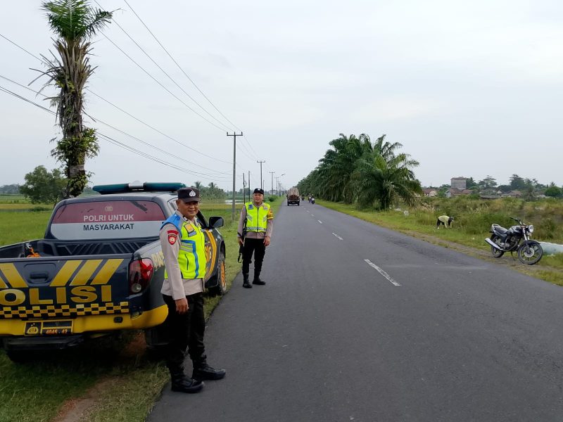 Personel Kepolisian Bersiaga Antisipasi Balap Liar dan Gangguan Kamtibmas di Jalan Raya Belitang