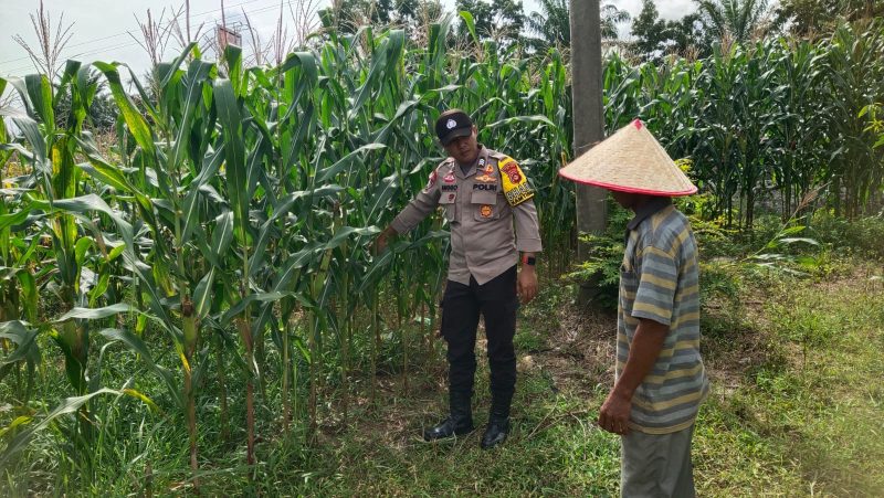 Jaga Petani dan Panen! Brigadir Anggo Noversa Kontrol Lahan Jagung di Desa Serbaguna