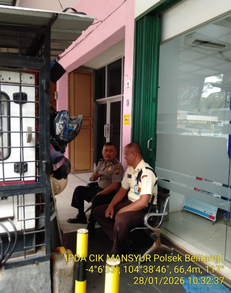Belitang – Guna menciptakan situasi kamtibmas yang kondusif di pusat pelayanan publik, jajaran Polsek Belitang I Polres OKU Timur melaksanakan kegiatan patroli rutin di sejumlah obyek vital. Pada Rabu pagi, 28 Januari 2026, Ipda Cik Mansyur melakukan pemantauan langsung terhadap aktivitas perbankan di Bank Sumsel Babel Syariah Belitang. Langkah ini merupakan bagian dari upaya preventif kepolisian dalam mengantisipasi terjadinya gangguan keamanan serta memberikan perlindungan maksimal bagi nasabah yang sedang melakukan transaksi keuangan di awal hari kerja.