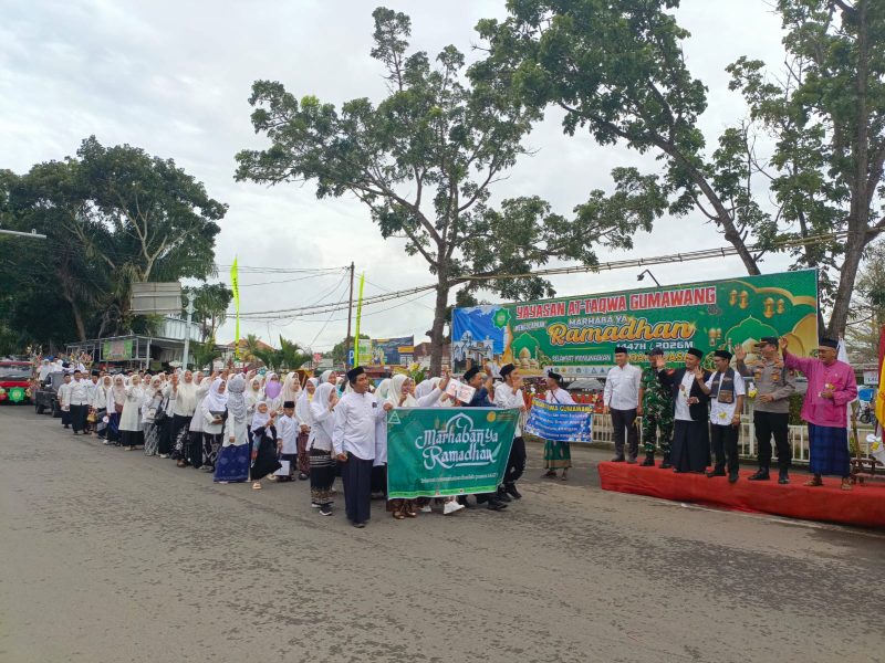 Belitang – Dalam rangka menjamin keamanan dan kelancaran kegiatan kemasyarakatan menyambut bulan suci Ramadhan, jajaran Polsek Belitang I Polres OKU Timur melaksanakan pengamanan ketat pada giat Pawai Ramadhan 1447 H yang diselenggarakan oleh Yayasan At Taqwa Gumawang. Kegiatan yang berlangsung pada Rabu pagi, 17 Februari 2026 ini berpusat di depan Masjid Agung At Taqwa Desa Gumawang. Kapolsek Belitang I AKP Johan Syafri S.E. terjun langsung memimpin personel di lapangan guna memastikan rangkaian pawai yang melibatkan ratusan siswa dan guru ini dapat berjalan tanpa hambatan keamanan serta tidak mengganggu arus lalu lintas di kawasan pasar.