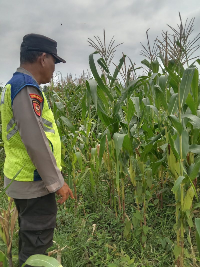 Monitoring Pertumbuhan Tanaman Jagung Sasaran pemantauan kali ini adalah lahan milik Bapak Sutar (56), seorang petani berpengalaman yang mengelola tanaman jagung di atas lahan seluas 1/4 hektar. Aiptu Irwan Irwandi melakukan pengecekan kualitas tanaman serta berdialog mengenai kendala yang dihadapi petani, mulai dari ketersediaan pupuk hingga sistem irigasi di musim tanam kali ini.