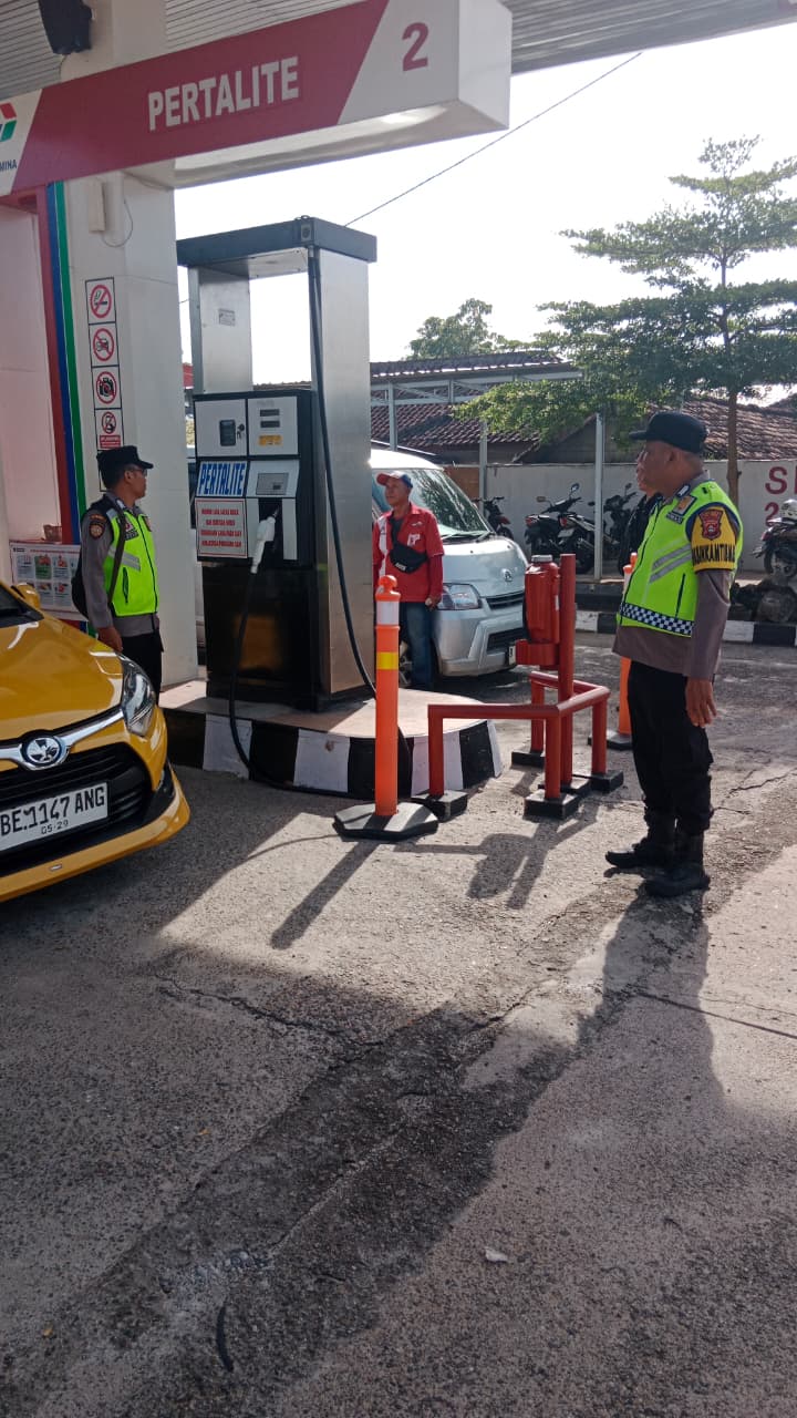 Personel Polsek Belitang I Siaga di SPBU 24.321.64 Guna Antisipasi Antrean Panjang