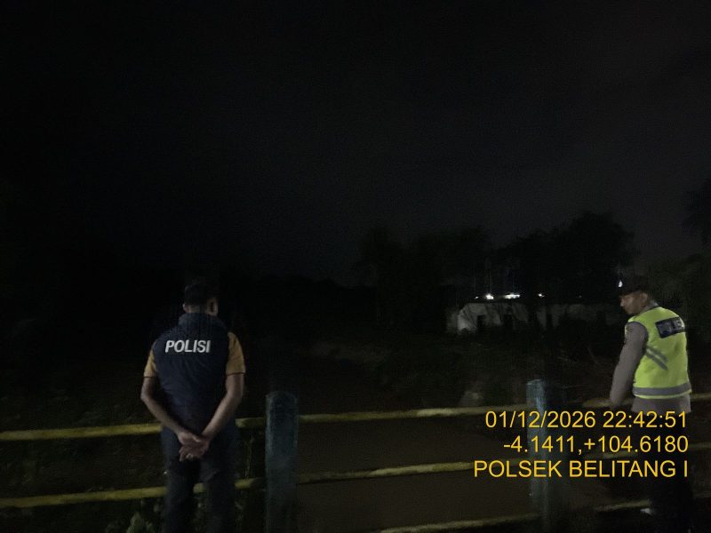 Belitang – Dalam upaya menjaga keamanan wilayah dari potensi bencana alam di tengah cuaca hujan, jajaran Polsek Belitang I Polres OKU Timur melaksanakan monitoring intensif pada Senin malam, 12 Januari 2026. Sejak pukul 22.00 WIB, tim piket fungsi bergerak menuju titik rawan luapan air di aliran Sungai Macak yang melintasi Desa Sukajadi. Langkah proaktif ini dilakukan guna mendeteksi dini setiap perubahan volume air yang dapat terjadi akibat tingginya intensitas hujan yang melanda wilayah Kabupaten OKU Timur dalam beberapa waktu terakhir.