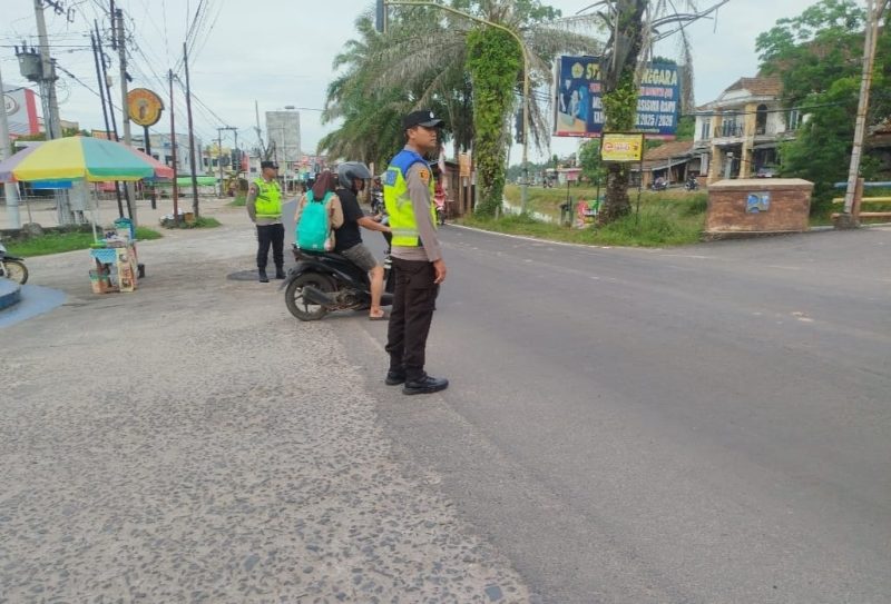 Pengaturan Lalu Lintas Pagi oleh Polsek Belitang I di Simpang Tugu KTM