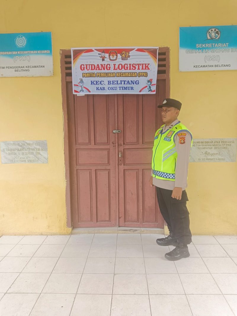 Belpost OKU Timur, Minggu, 24 November 2024 – Dalam rangka memastikan keamanan dan kesiapan logistik Pilkada 2024, Personel Polsek Belitang I melaksanakan pengecekan di Gudang Logistik Panitia Pemilihan Kecamatan (PPK) Belitang. Kegiatan ini dilakukan untuk memantau kondisi gudang, keamanan logistik, dan kesiapan penyelenggaraan tahapan Pilkada Serentak 2024.