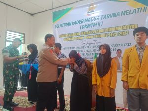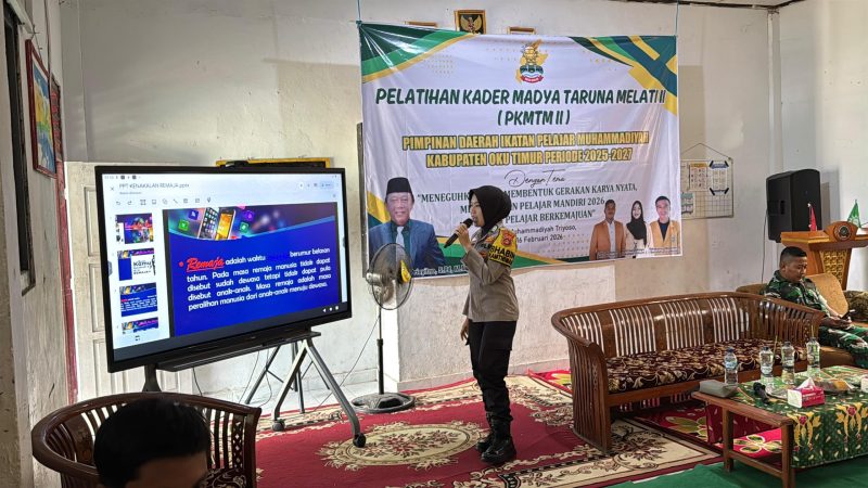 Belitang – Dalam upaya membentengi generasi muda dari pengaruh negatif lingkungan, jajaran Polsek Belitang I Polres OKU Timur hadir memberikan materi pembinaan pada kegiatan Pelatihan Kader Madya Taruna Melati II yang diselenggarakan oleh Pimpinan Daerah Ikatan Pelajar Muhammadiyah Kabupaten OKU Timur. Kegiatan yang berlangsung di SMP 3 Muhammadiyah Desa Karang Kemiri pada Sabtu, 14 Februari 2026 ini diikuti oleh puluhan peserta dari berbagai tingkatan sekolah. Kapolsek Belitang I yang diwakili oleh Kasium Aiptu Aris Budi Setiono S.H hadir sebagai wujud dukungan kepolisian terhadap pengembangan kepemimpinan pelajar yang berlandaskan moral dan hukum.