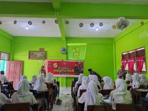 Selanjutnya, Brigpol Tri Novia Yunita memberikan presentasi mengenai proses pendaftaran, kriteria seleksi, dan tahapan ujian yang harus dilalui calon anggota Polri. Para siswa juga berkesempatan untuk berdialog langsung dengan petugas, menanyakan berbagai hal terkait pendaftaran, seperti persyaratan fisik, pendidikan, dan manfaat yang akan mereka dapatkan jika bergabung dengan Polri.