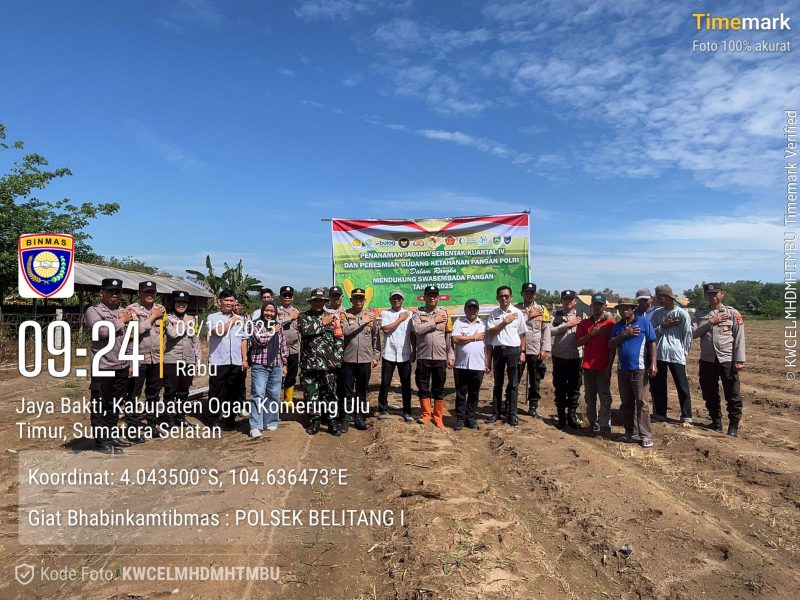 OKU Timur – Dalam rangka mendukung program Ketahanan Pangan Polri serta implementasi Instruksi Presiden RI untuk memperkuat sektor pertanian menuju Indonesia Emas 2045, Polsek Belitang I Polres OKU Timur melaksanakan Zoom Meeting dan kegiatan Penanaman Jagung Serentak Kuartal IV, pada Rabu (08/10/2025) sekira pukul 14.00 WIB.