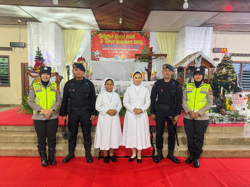 Polsek Belitang I Jamin Kenyamanan Ibadah Natal : Sterilisasi Aman di Gereja Santa Maria Tak Bernoda