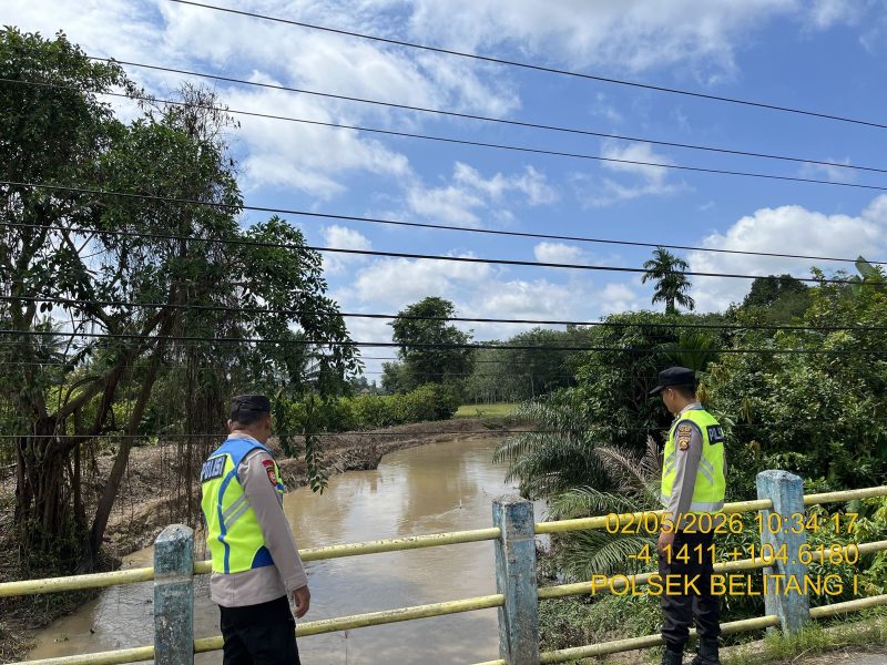 Belitang – Sebagai bentuk kewaspadaan terhadap potensi bencana alam di musim penghujan, jajaran Polsek Belitang I Polres OKU Timur terus intensif melakukan pemantauan terhadap kondisi perairan di wilayah hukumnya. Pada Kamis pagi, 5 Februari 2026, sejumlah personel piket kepolisian melaksanakan giat monitoring perkembangan debit air di aliran Sungai Macak yang melintasi Desa Sukajadi. Kegiatan yang dimulai sejak pukul 09.00 WIB ini bertujuan untuk mendeteksi secara dini potensi kenaikan volume air yang dapat mengancam pemukiman warga serta lahan pertanian di sekitar bantaran sungai demi menjamin keselamatan masyarakat setempat.