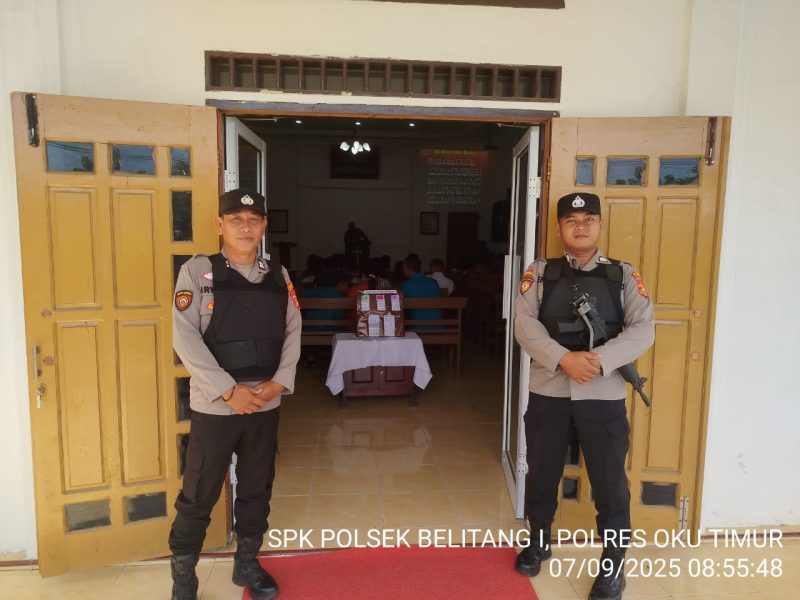 Belitang – Untuk memastikan rasa aman dan nyaman bagi umat Kristiani dalam beribadah, pada Minggu 7 September 2025 sekira pukul 08.50 WIB, personel Polsek Belitang I melaksanakan pengamanan kegiatan Ibadah Minggu Kasih di Gereja GKSBS Desa Tegal Rejo, Kecamatan Belitang, Kabupaten OKU Timur.
