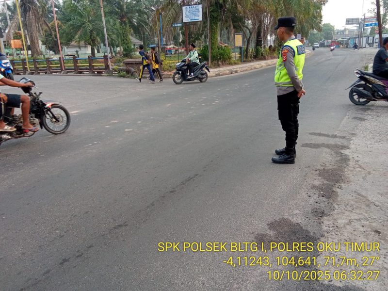 OKU Timur – Untuk memastikan kelancaran aktivitas masyarakat di pagi hari, personel Polsek Belitang I Polres OKU Timur melaksanakan kegiatan pengaturan lalu lintas atau strong point di sejumlah titik rawan kemacetan pada Jumat, 10 Oktober 2025, sejak pukul 06.30 WIB hingga selesai.
