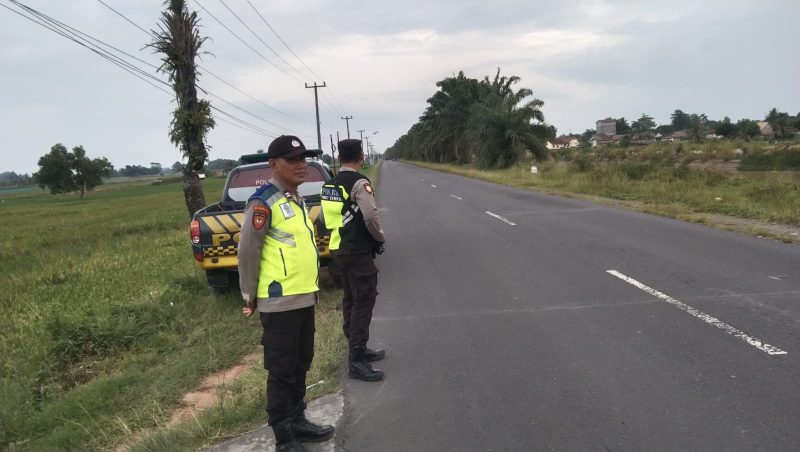 Personel Kepolisian Siaga di Sepanjang Jalur BK 9 Hingga BK 8 Demi Kenyamanan Warga Belitang