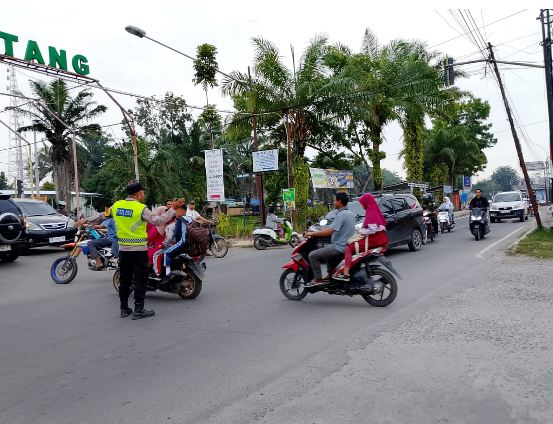 Polsek Belitang I Siagakan Personel di Simpang Tugu KTM Guna Jamin Kelancaran Arus Lalu Lintas