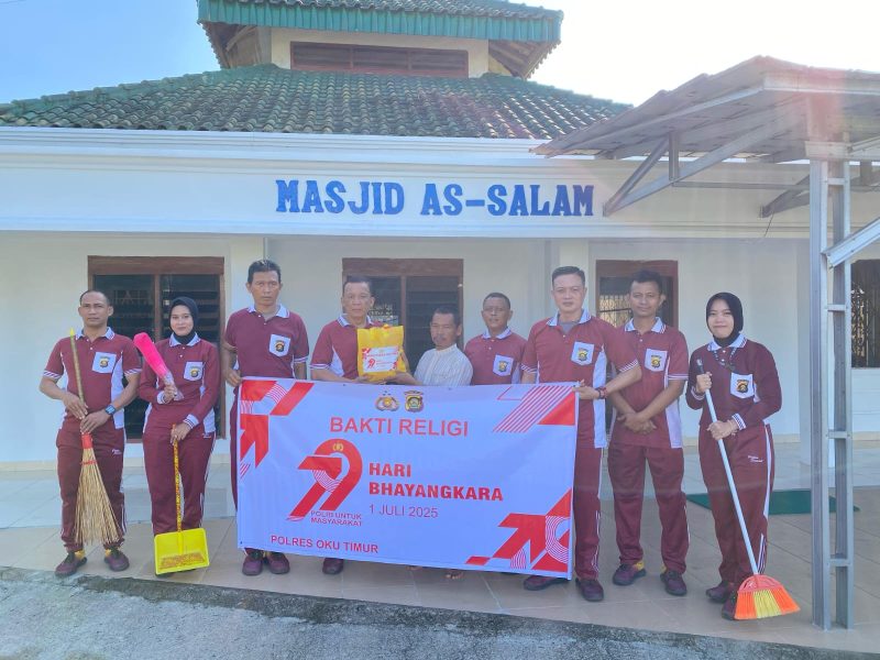 OKU Timur, 20 Mei 2025 — Dalam rangka menyambut Hari Bhayangkara ke-79, Polsek Belitang I Polres OKU Timur melaksanakan kegiatan Bakti Religi sebagai bentuk kepedulian dan sinergi dengan masyarakat lintas agama. Kegiatan yang berlangsung pada Jumat pagi pukul 08.30 WIB ini menyasar dua tempat ibadah, yaitu Masjid As-Salam Desa Gumawang dan Gereja GKSBS Belitang Desa Tegal Rejo, Kecamatan Belitang, Kabupaten OKU Timur.