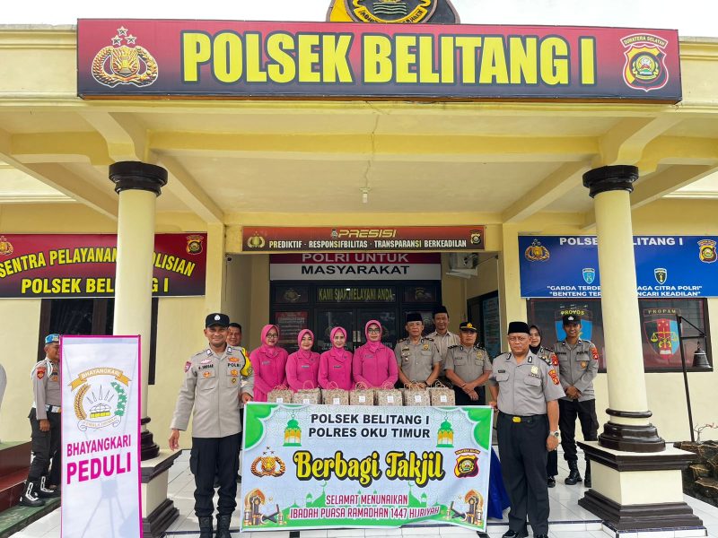 OKU TIMUR – Sore yang cerah di depan Mapolsek Belitang I mendadak ramai dengan antusiasme warga. Bukan tanpa alasan, langkah kaki para pengendara melambat saat melihat barisan personel Polsek Belitang I dan ibu-ibu Bhayangkari yang tampak sigap membagikan paket takjil untuk berbuka puasa.