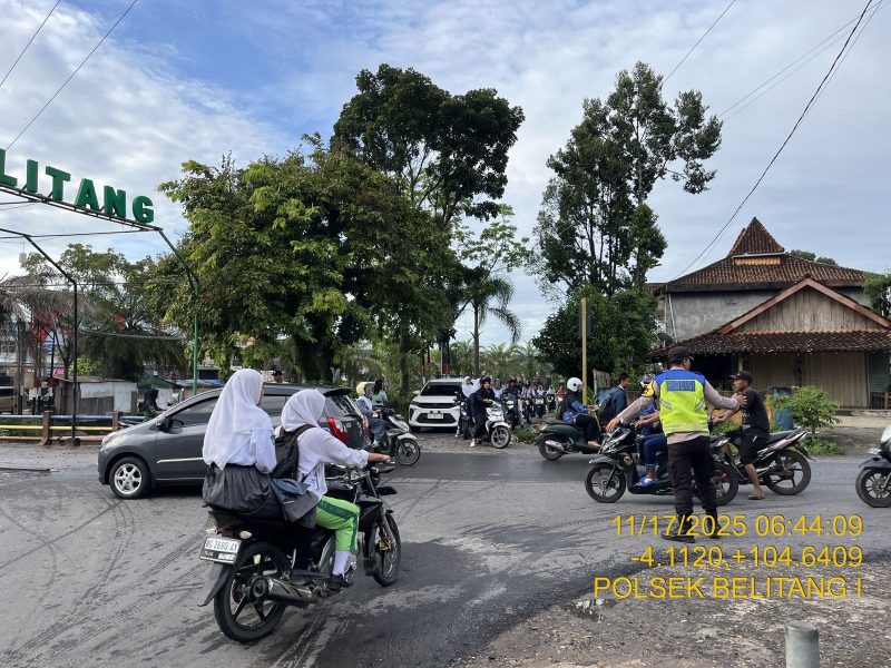 OKU Timur – Guna memberikan pelayanan terbaik bagi masyarakat pada jam-jam sibuk pagi hari, Personel Polsek Belitang I kembali melaksanakan Giat Pengaturan Lalu Lintas (Strong Point) pada Senin (17 November 2025) mulai pukul 06.30 WIB hingga selesai.